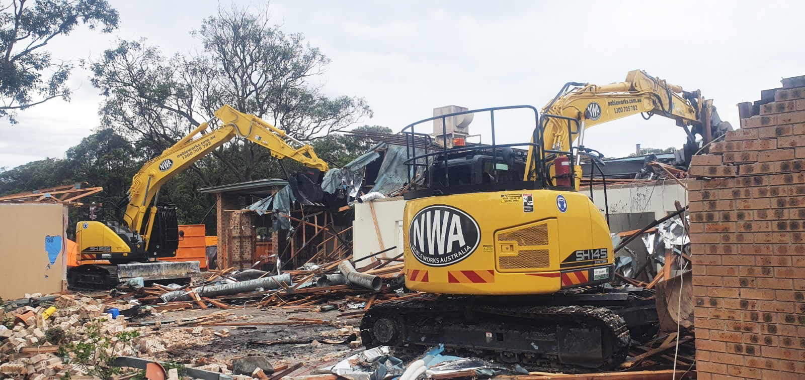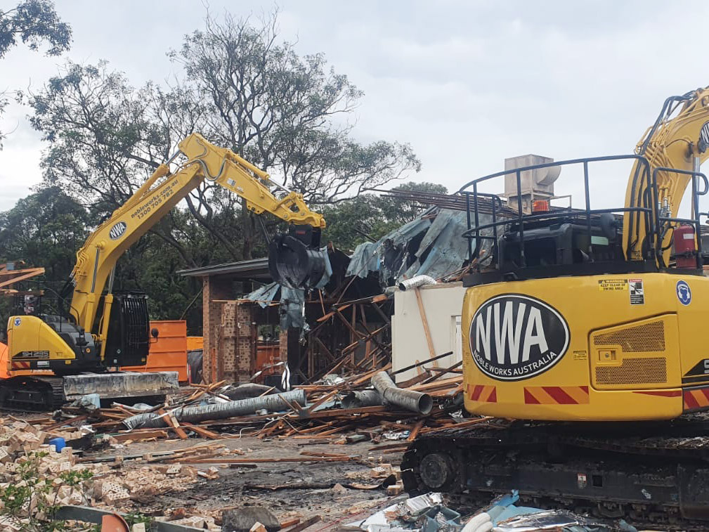 Works involved the strip-out and demolition of a 200m2 nursing home and removal of the slab underneath. Use of our 23 and 14 Ton excavators in combination with hand demo meant the job was delivered on time despite restrictions related to the pandemic.